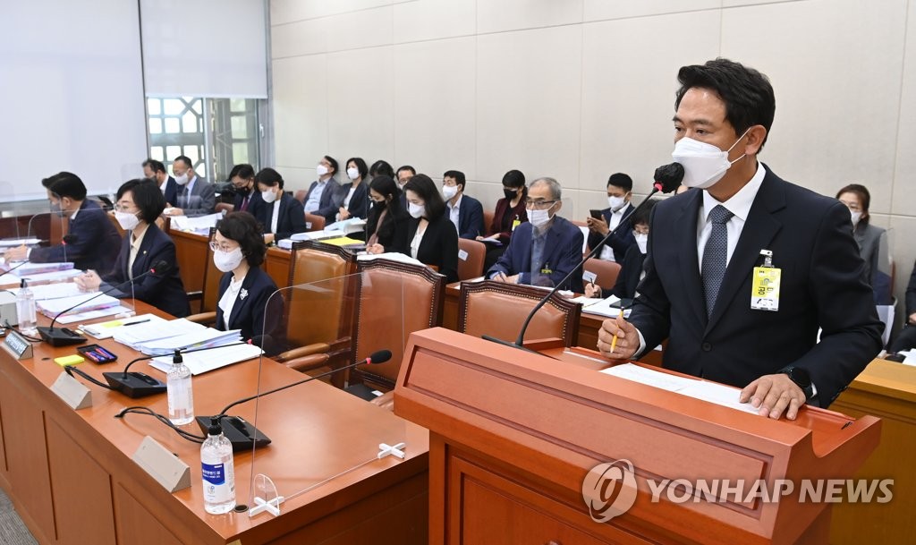 | ▲ 답변하는 배형진 모다모다 대표이사 (서울=연합뉴스) 하사헌 기자 = 배형진 모다모다 대표이사가 7일 국회에서 열린 보건복지위원회의 식품의약품안전처 등에 대한 국정감사에 참고인으로 출석해 더불어민주당 최혜영 의원의 질의에 답변하고 있다. 2022.10.7 [국회사진기자단] toadboy@yna.co.kr |