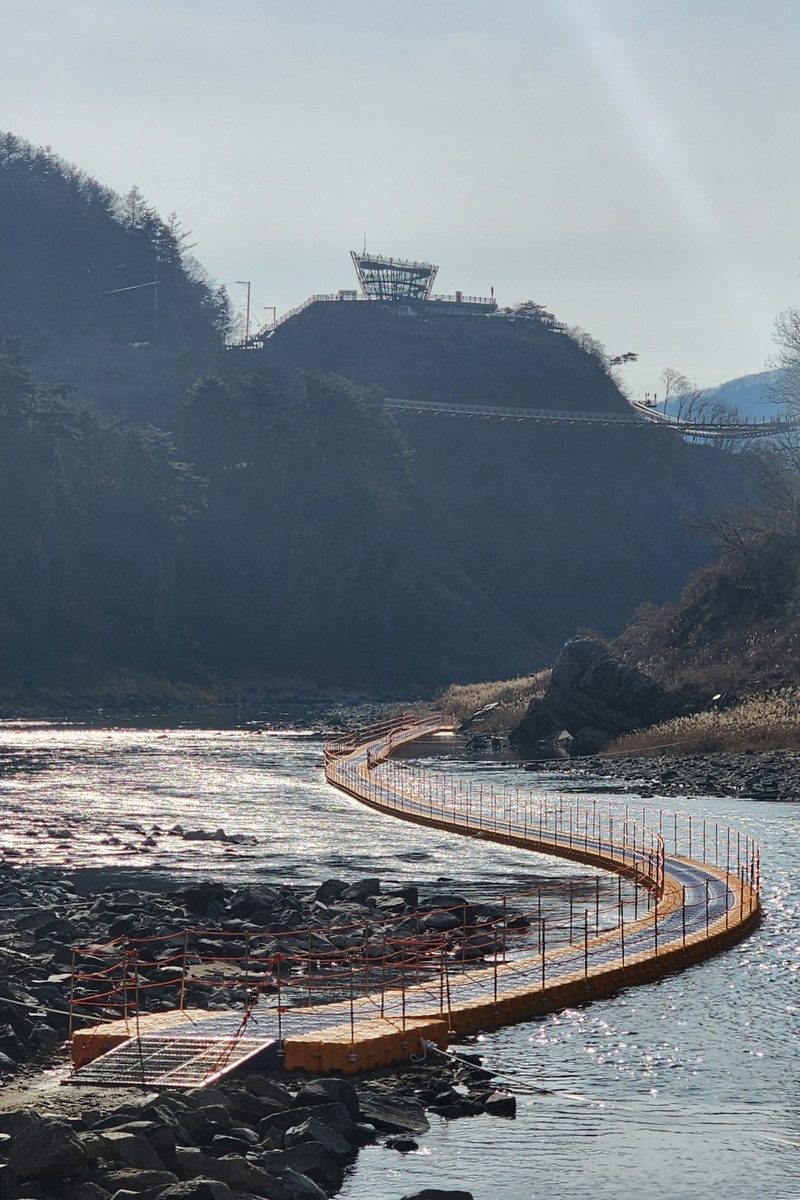 가람길은 수면 위를 따라 걷는 부교로, 기존 전망 위주의 관람에서 벗어나 주상절리 협곡을 가까이에서 경험하도록 기획한 동절기 관광 콘텐츠다.