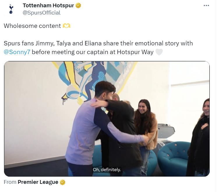 잉글랜드 프로축구 프리미어리그 토트넘 홋스퍼의 '캡틴' 손흥민이 암 투병 중인 팬과 만나 진심 어린 위로를 전하고 회복을 기원하는 뜻깊은 시간을 가졌다.