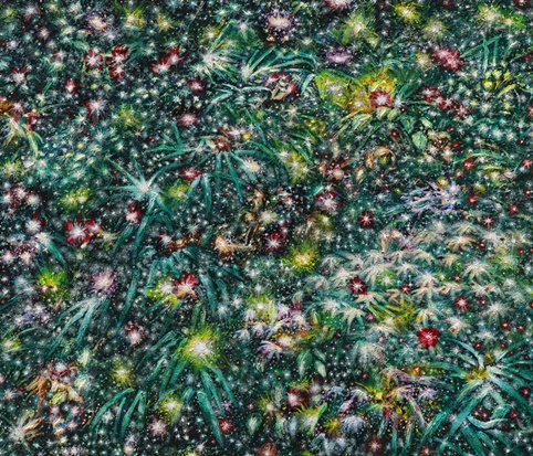 꽃이나 풀, 바다, 숲 등을 주로 그렸던 작가는 최근 우주를 주제로 작업하고 있다. 다양한 우주의 이미지를 참고하고 작가의 상상을 더한 작업이다.