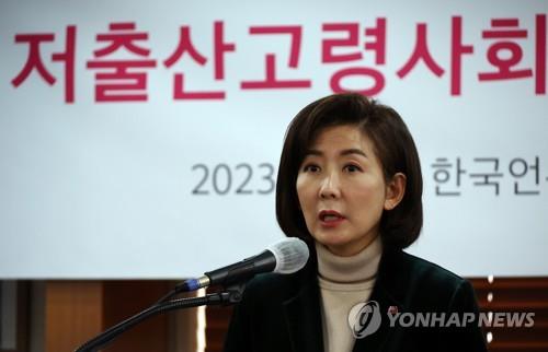 | ▲ Na Kyung-won, vice chief of the Presidential Committee on Ageing Society and Population Policy, gives a press conference in Seoul on Jan. 5, 2023. (Yonhap) |
