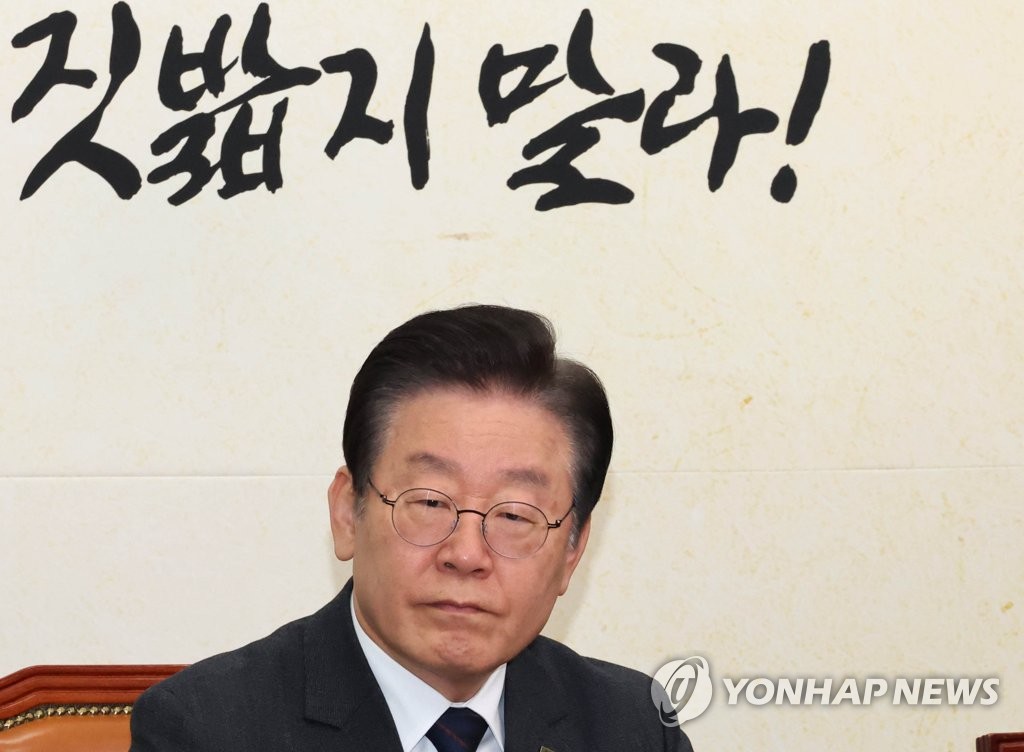 | ▲ Lee Jae-myung, chair of the main opposition Democratic Party, attends a party meeting on March 22, 2023, at the National Assembly in Seoul. (Yonhap) |