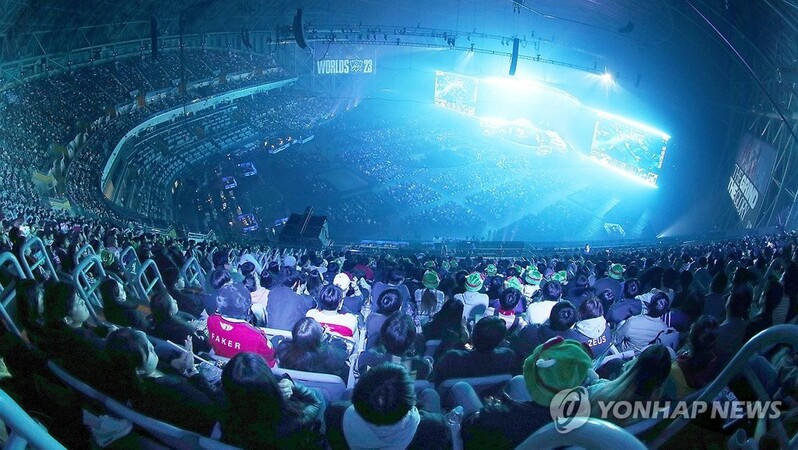 | ▲ '고척돔 꽉 채운 롤드컵 응원 열기' (서울=연합뉴스) 19일 오후 서울 구로구 고척스카이돔에서 열린 2023 리그 오브 레전드(LoL) 월드 챔피언십(롤드컵) 결승전 T1과 웨이보 게이밍의 경기에서 팬들이 응원을 하고 있다. 2023.11.19 [사진공동취재단] photo@yna.co.kr |