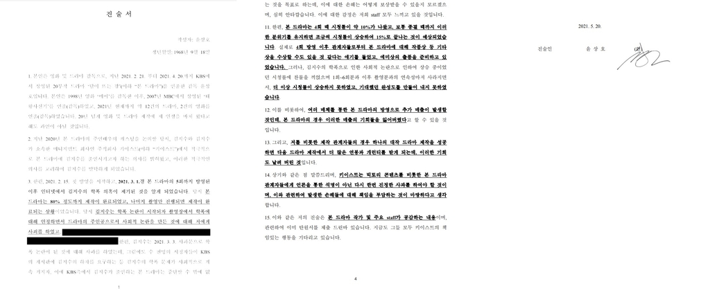 | ▲ '달이 뜨는 강' 윤상호 PD 진술서 [빅토리콘텐츠 제공. 재판매 및 DB 금지] |