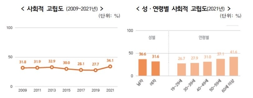 통계청은 "코로나19로 사람들과의 대면 활동이 제한되면서 사회적 고립도에도 영향을 미쳤다"고 설명했다.