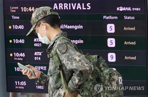 | ▲ In this file photo, a service member walks at Seoul Station in central Seoul on April 29, 2022. (Yonhap) |