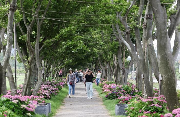 '팽나무 10리길에서 수국을 만나다'라는 주제로 열린 이번 축제에는 전국에서 3만여명이 찾았다.