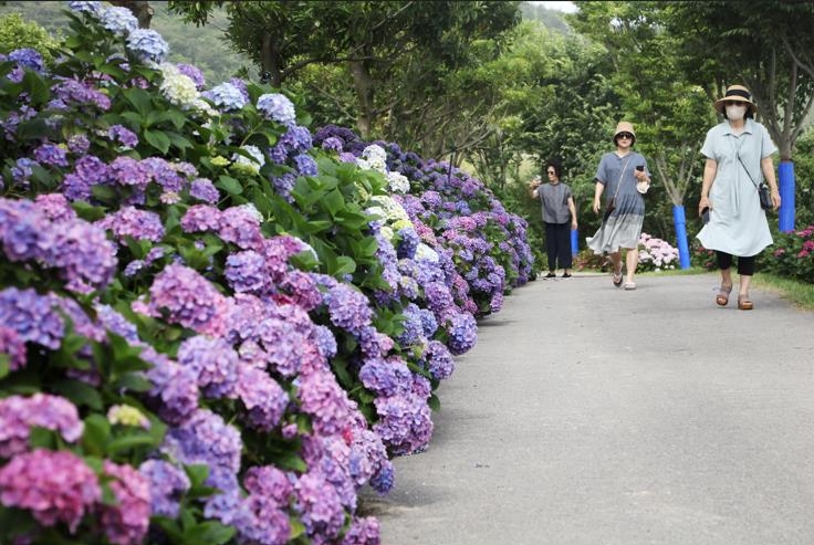 이달 말께 수국꽃이 지면 9월에는 가을 목수국과 팜파스그라스가 피어 관광객 발길이 이어질 것으로 군은 기대했다.