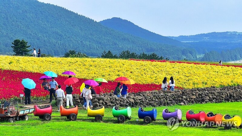 | ▲ 색의 향연 펼치는 제주 (서귀포=연합뉴스) 제주 서귀포시 표선면 성읍리 보롬왓을 찾은 관광객들이 맨드라미 등이 활짝 핀 꽃밭에서 가을 정취를 만끽하고 있다. [연합뉴스 자료사진] |