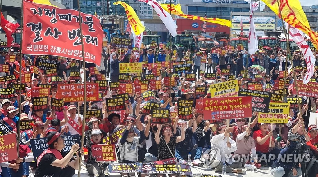 | ▲ "주문진에 폐기물 매립장 안 돼"…강릉·양양 주민 궐기대회 [연합뉴스 자료사진] |