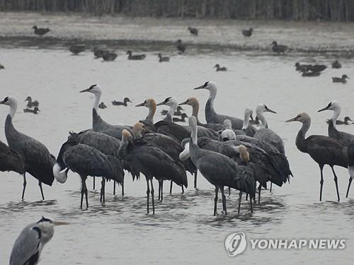 | ▲ 올겨울 고성 마동호에서 관찰된 흑두루미 [경남 고성군 제공. 재판매 및 DB 금지] |