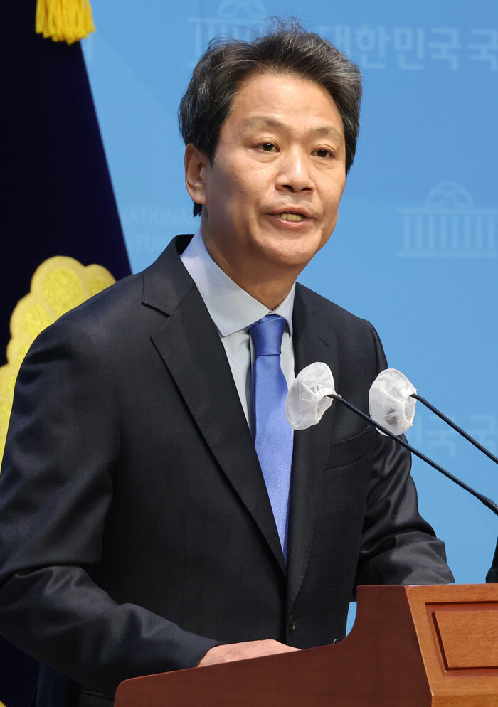 Former chief presidential secretary Im Jong-seok of the main opposition Democratic Party holds a news conference at the National Assembly in Seoul on Feb. 28, 2024, calling for the party to reconsider its earlier decision to exclude him from being nominated as a candidate for the April 10 general elections. (Yonhap)