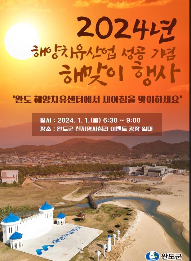 해맞이 행사가 열리는 완도 해양치유센터는 1월 1일 방문객들을 위해 정상 운영하며, 50% 할인 금액으로 해양치유 프로그램을 이용할 수 있다.
