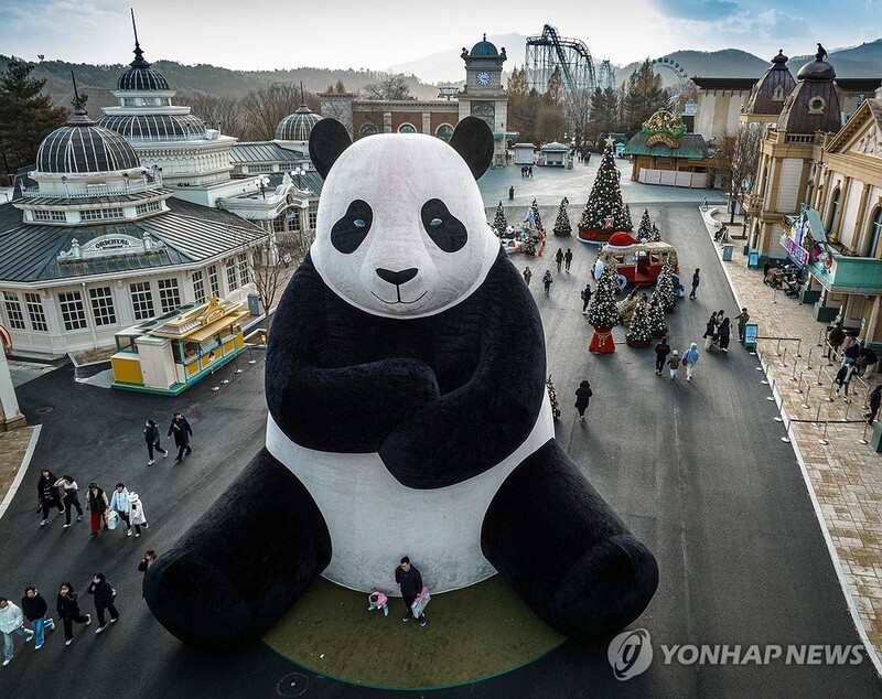 | ▲ 에버랜드, '연말 스페셜 위크' 운영 (서울=연합뉴스) 에버랜드가 오는 27일부터 열리는 2024년 새해를 맞이 연말 스페셜 위크에서 판다 가족과 함께하는 다양한 프로그램을 운영한다고 26일 밝혔다. 사진은 에버랜드 글로벌페어에 설치된 12미터 높이 초대형 판다 조형물 '자이언트 바오'. 2023.12.26 [삼성물산 리조트부문 제공. 재판매 및 DB 금지] photo@yna.co.kr |