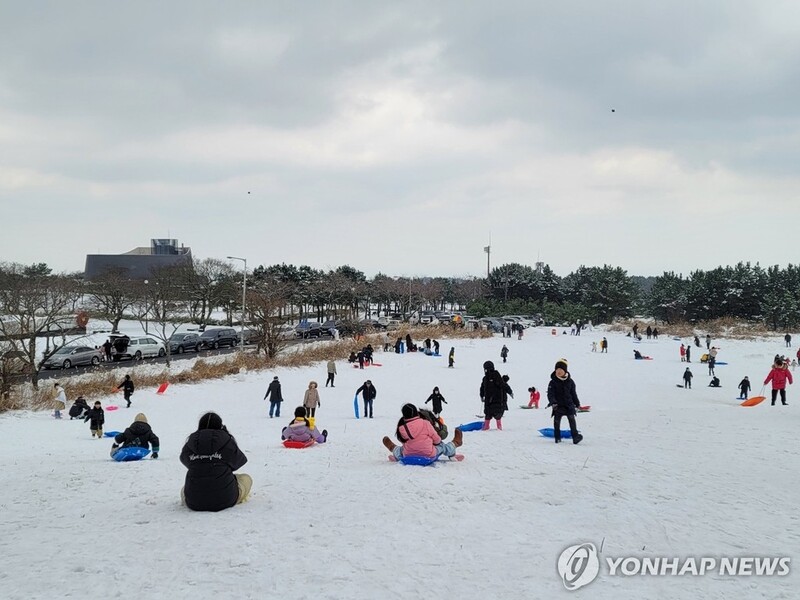 | ▲ 썰매 타고 '씽씽' (제주=연합뉴스) 전지혜 기자 = 성탄절인 25일 제주시 봉개동 한 언덕에서 나들이객들이 눈썰매를 타거나 눈사람을 만드는 등 즐거운 시간을 보내고 있다. 2023.12.25 atoz@yna.co.kr |
