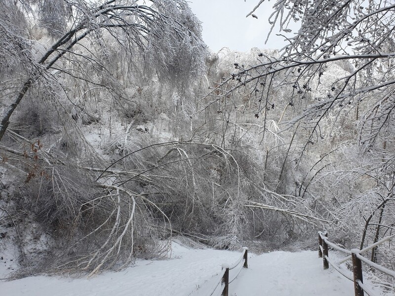 지난 14∼17일 인제에 내린 폭설과 강추위로 자작나무 가지가 얼면서 나무가 쓰러지거나 휘어지는 피해가 발생했다.