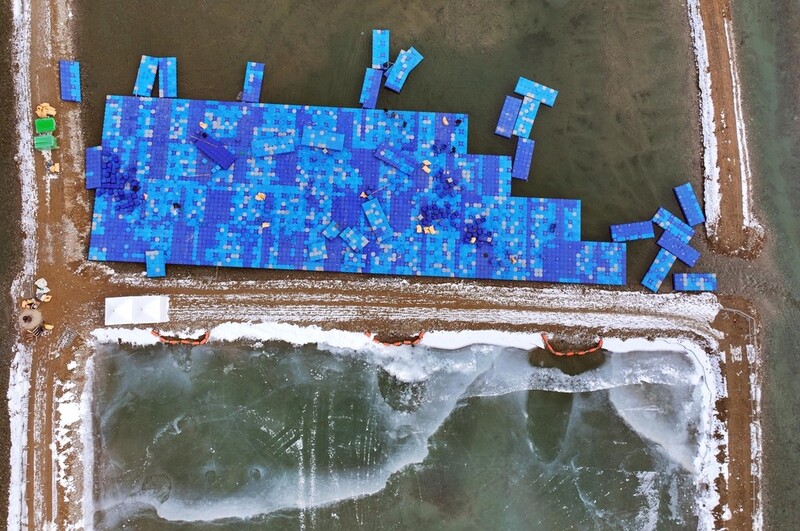 | ▲ 부교 낚시터 설치하는 꽁꽁축제 [촬영 이상학] |