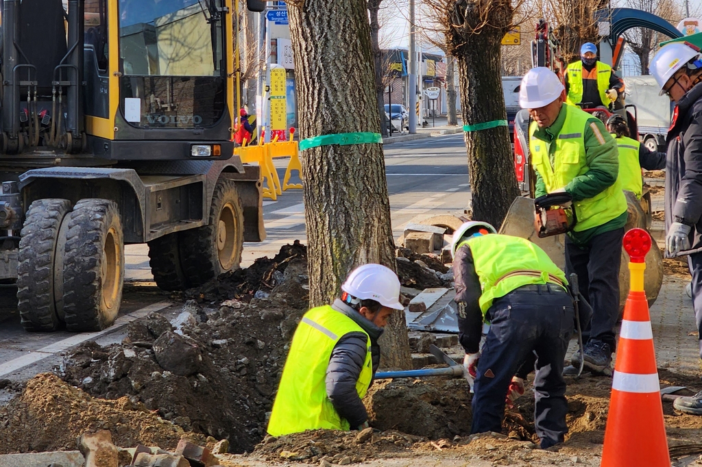 성산마을 은행나무 100여 주를 장성천변으로 옮겨 심는다.