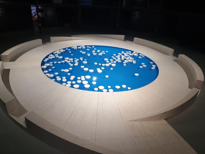 건축을 소재로 한 전시 '이음지음'은 중앙 원형 공간(상상원)과 그 주변을 둘러싼 원형 모듈 구조의 복합전시 2관의 특성을 살려 전시 공간을 구성했다.