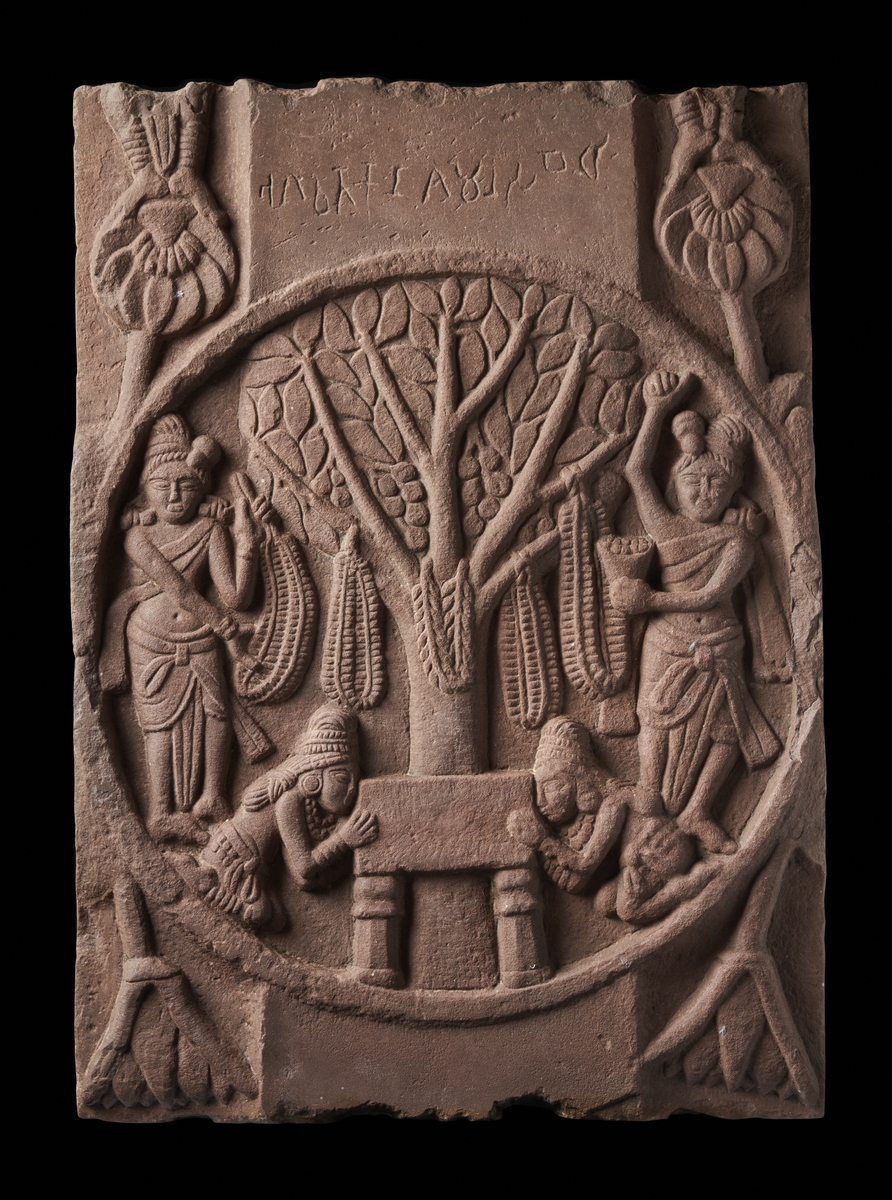 | ▲ '빈 자리를 향한 경배', 기원전 2세기 후반경, 바르후트, 인도박물관[국립중앙박물관 제공. 재판매 및 DB 금지] |