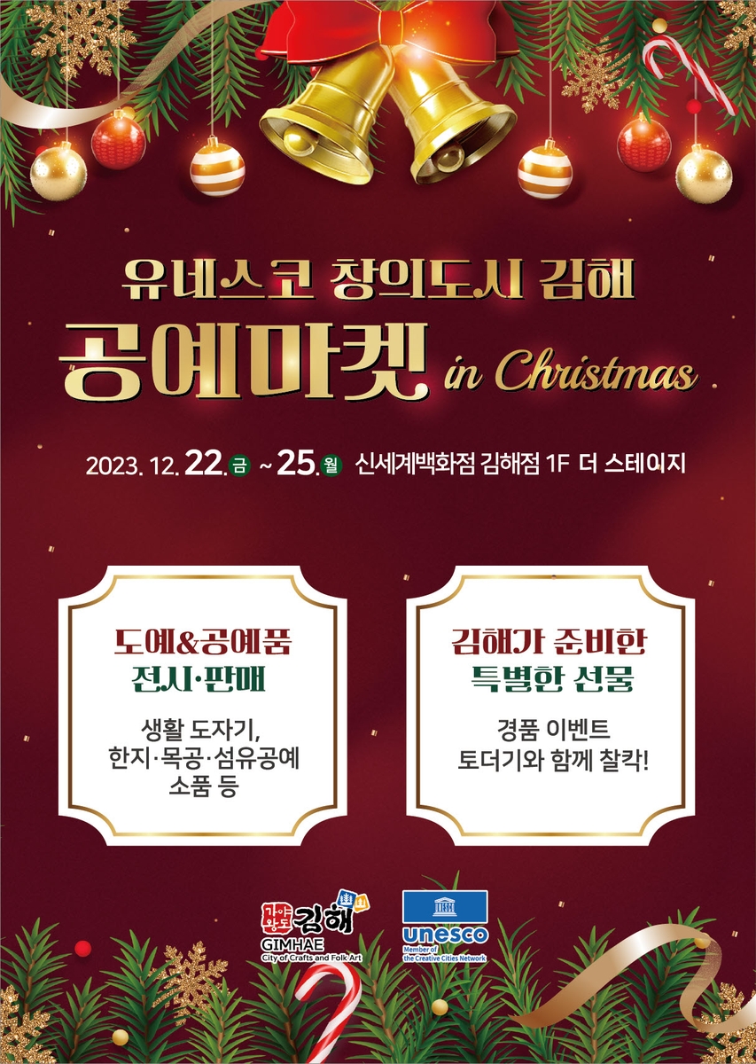 (김해=연합뉴스) 최병길 기자 = 경남 김해시와 신세계백화점 김해점은 오는 22일부터 25일까지 지역 공예품을 전시, 판매하는 '유네스코 창의도시 김해, 공예마켓 in Christmas' 특별 판매전을 한다고 19일 밝혔다.