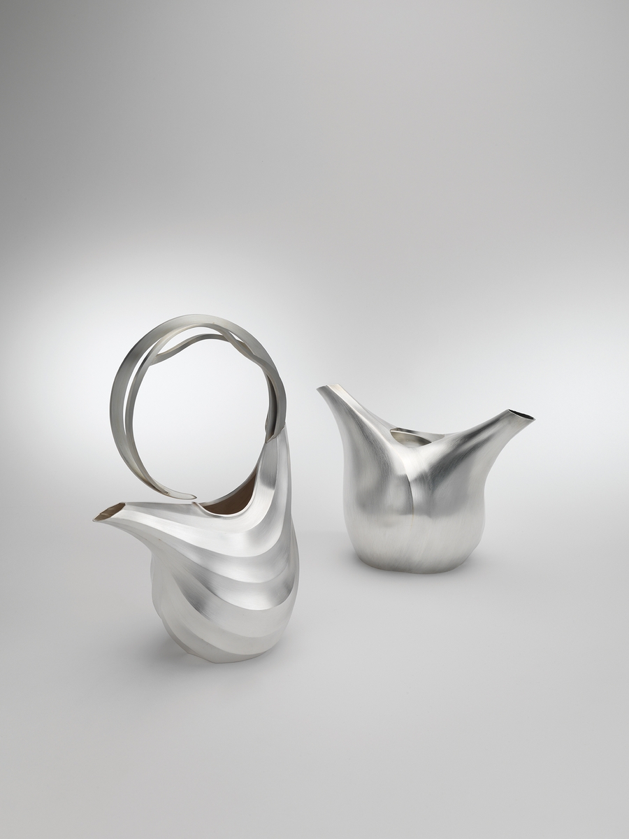 | ▲ 김동현의 '결 II'(왼쪽. 정은, 백동), '나누어주는 사람'(황동, 은도금).[서울공예박물관 제공. 재판매 및 DB 금지] |