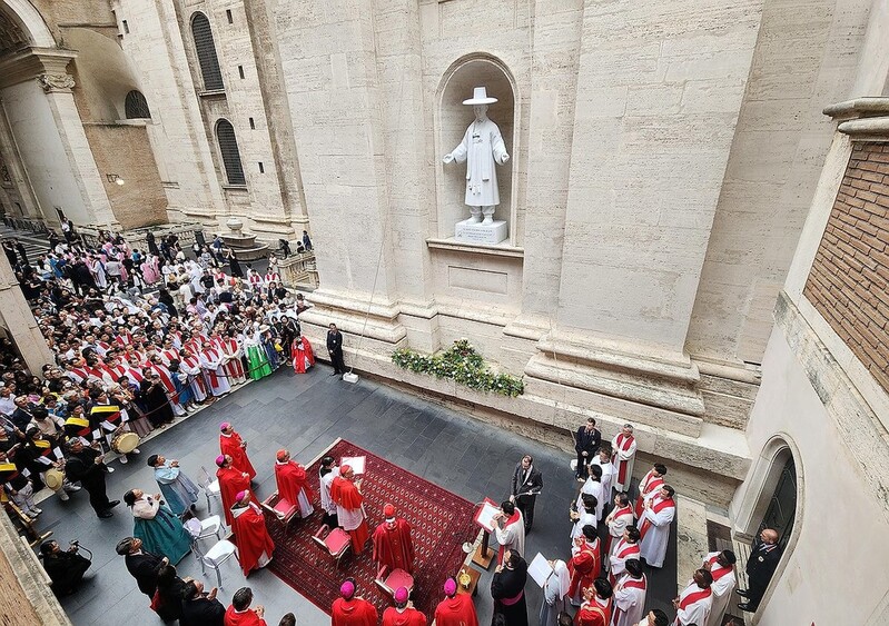 | ▲ 김대건 신부 성상 축복식 9월 16일(현지시간) 성 김대건 안드레아 신부 성상 축복식이 16일(현지시간) 바티칸 성 베드로 대성전 외벽의 설치 장소 인근에서 거행되고 있다.[연합뉴스 자료사진] |