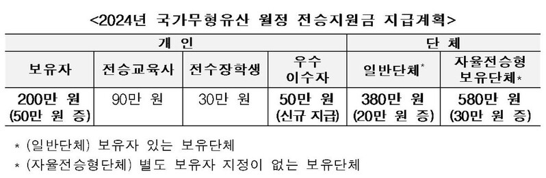| ▲ 전승지원금 지급 계획 [문화재청 제공. 재판매 및 DB 금지] |