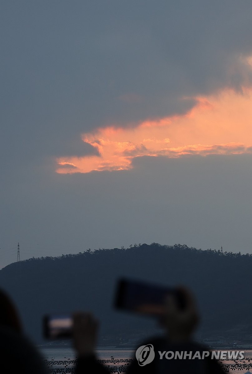 | ▲ 구름 낀 해돋이 (서울=연합뉴스) 2024년 새해 첫날인 1일 오전 경북 포항시 영일대 해수욕장에서 시민들이 해돋이를 보기 위해 기다리고 있다. 2024.1.1 [독자 제공. 재판매 및 DB 금지] photo@yna.co.kr |
