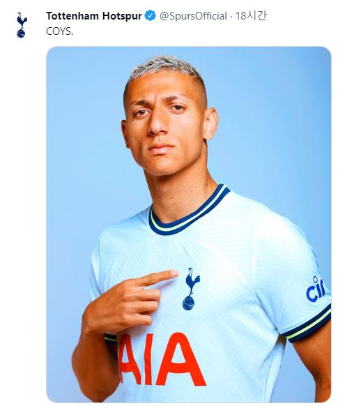 | ▲ 토트넘 유니폼을 입은 히샤를리송 [토트넘 트위터 캡처. 재판매 및 DB 금지] |