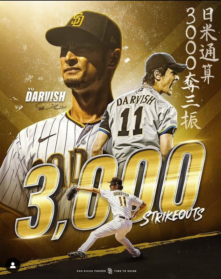 | ▲ 다르빗슈, 미일 통산 탈삼진 3천개 달성 [샌디에이고 파드리스 인스타그램 계정 캡처. 재판매 및 DB 금지] |
