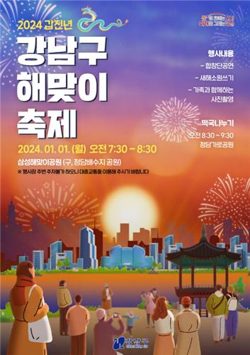 조성명 구청장은 "일출 명소로 떠오른 삼성해맞이공원에서 희망찬 한 해를 다짐해보길 바란다"며 "갑진년 청룡의 해를 맞아 구민 모두 소망하는 일을 이루길 바라며, 용이 웅비하듯 강남 도약을 위해 힘차게 나아가겠다"고 밝혔다.