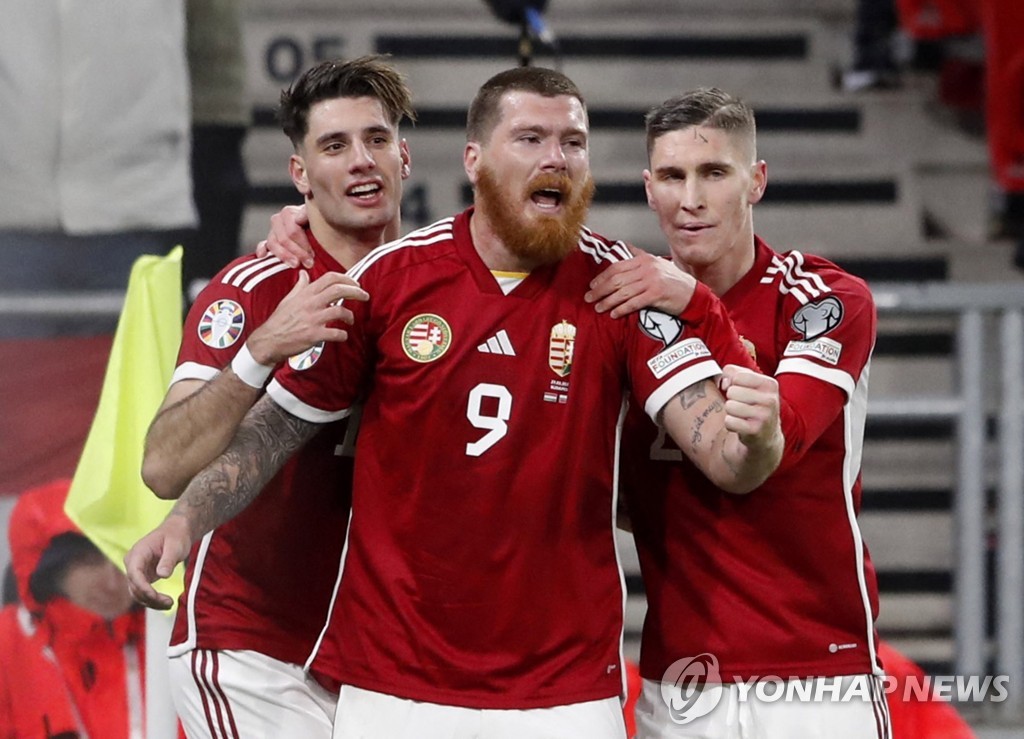 | ▲ 골 넣고 동료들과 기뻐하는 헝가리의 마틴 아담(9번) [로이터=연합뉴스] |