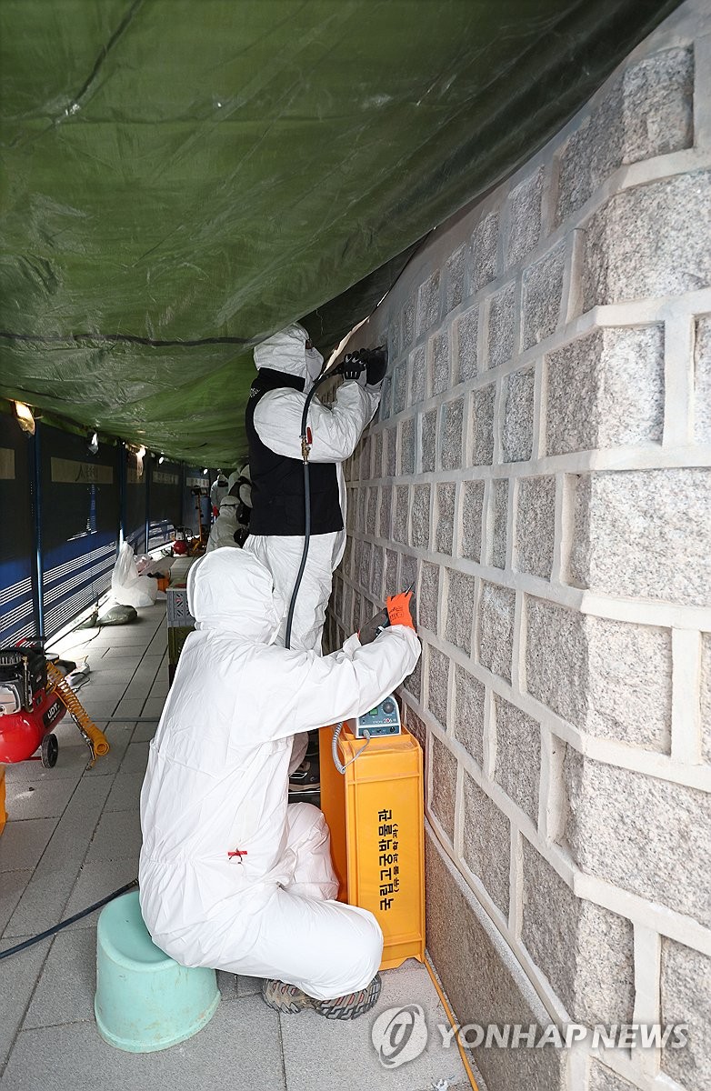 (서울=연합뉴스) 황희경 김예나 기자 = 스프레이로 훼손됐던 경복궁 담장이 낙서 흔적을 지운 뒤 내년 초 공개된다.