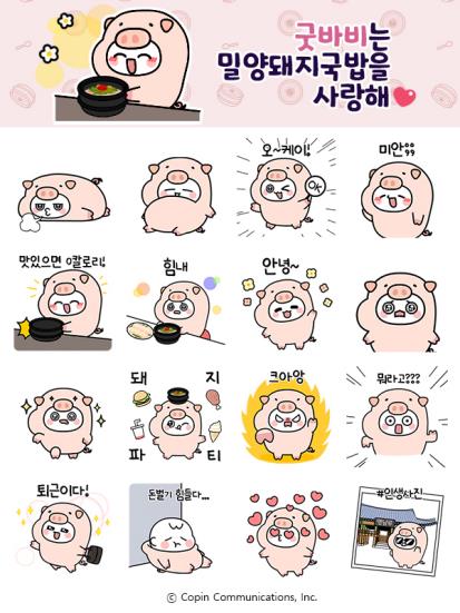 | ▲ 밀양돼지국밥 캐릭터 '굿바비' 이모티콘 [밀양시 제공. 재판매 및 DB 금지] |