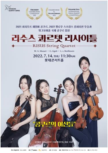 (서울=연합뉴스) 김용래 기자 = ▲ 리수스 콰르텟 리사이틀 = 여성 현악사중주단 리수스 콰르텟이 오는 7월 14일 서울 롯데콘서트홀에서 리사이틀을 연다.