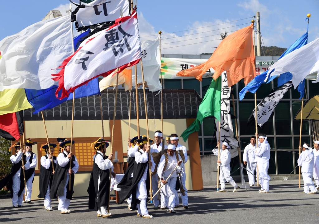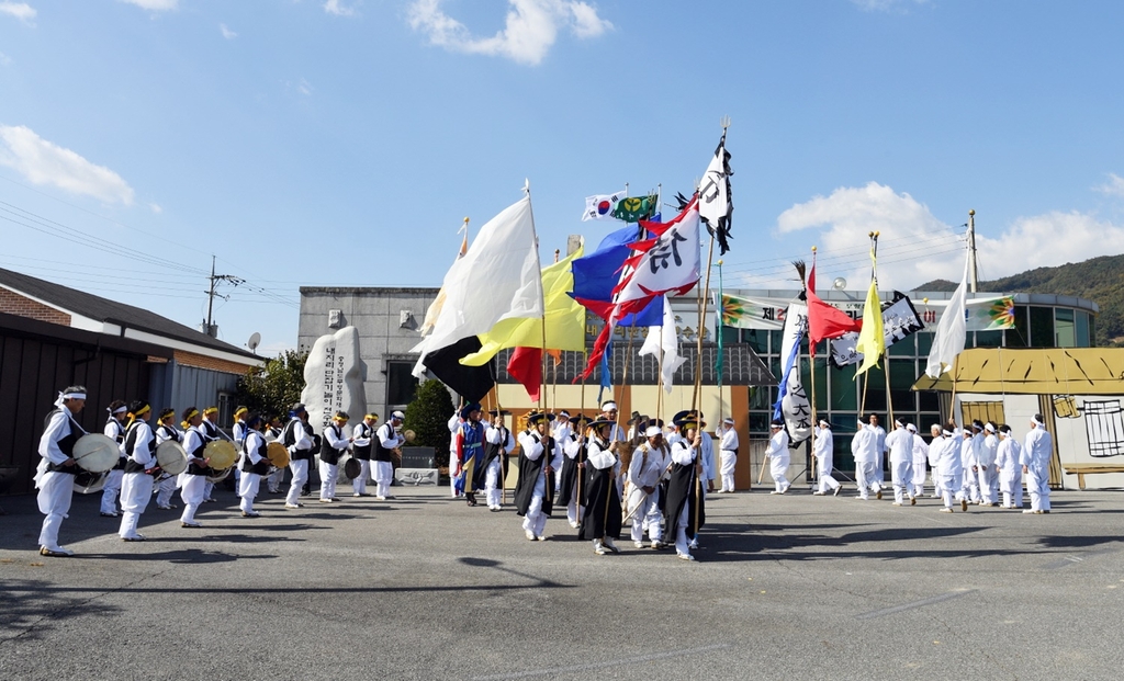 | ▲ 충남무형문화재 제29호 '내지리 단 잡기 공개행사' (부여=연합뉴스) 지난 24일 충남 부여군 은산면 내지리에서 '내지리 단 잡기 공개행사'가 열리고 있다. 2022.10.25 [부여군 제공. 재판매 및 DB 금지] |