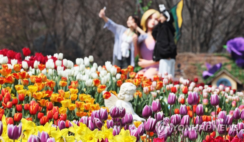 경기 용인 에버랜드 내 1만㎡ 규모의 포시즌스 가든에 새롭게 선보인 페어리 타운에는 형형색색의 튤립이 활짝 피어 자태를 뽐냈다. 입장객들은 이를 배경으로 사진을 찍느라 시간 가는 줄 몰랐다.
