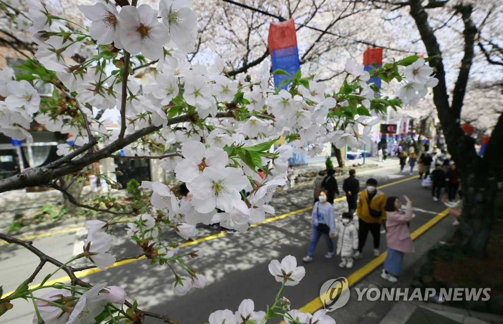 제주도 왕벚꽃 명소인 제주시 전농로와 애월읍 장전리에서도 '왕벚꽃축제'가 열려 봄을 즐기려는 시민과 관광객들의 발길이 온종일 이어졌다.