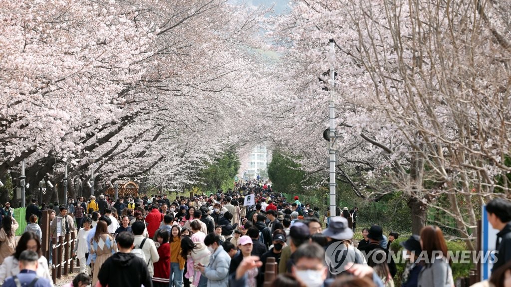 (전국종합=연합뉴스) 봄기운 가득한 휴일인 26일 전국 주요 관광지와 유원지는 봄꽃을 감상하려는 상춘객들로 북적였다.