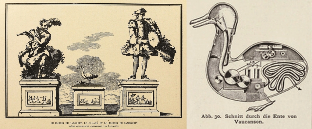 | ▲ 보캉송의 오토마타들(왼쪽)과 '오리 인형' 내부 [파람북 제공. 재판매 및 DB 금지] |