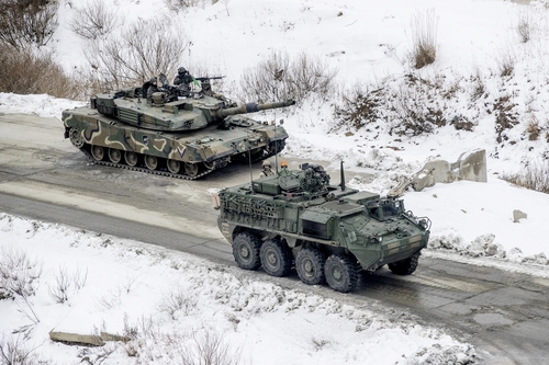 South Korea's Capital Mechanized Infantry Division and the U.S. Stryker Brigade Combat Team from the 2nd Infantry Division were mobilized for the drills, which have been under way in the border city of Pocheon, 46 kilometers northeast of Seoul, since Dec. 29. It runs through Friday.