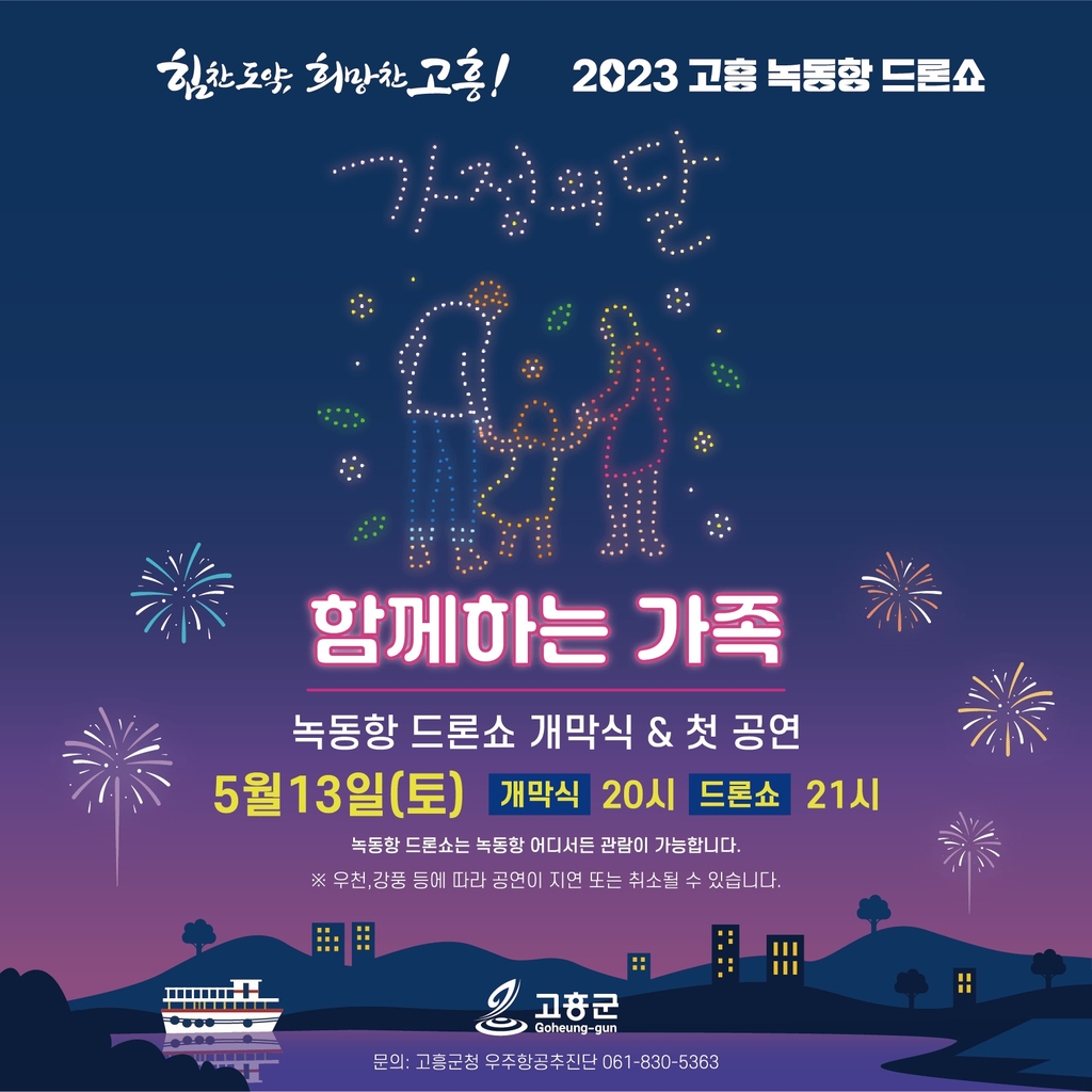공영민 고흥군수는 "매주 토요일 녹동항 밤바다를 화려하게 수놓을 드론쇼 상설 공연을 알차게 준비돼 있으니 많은 관심 부탁드린다"고 말했다.