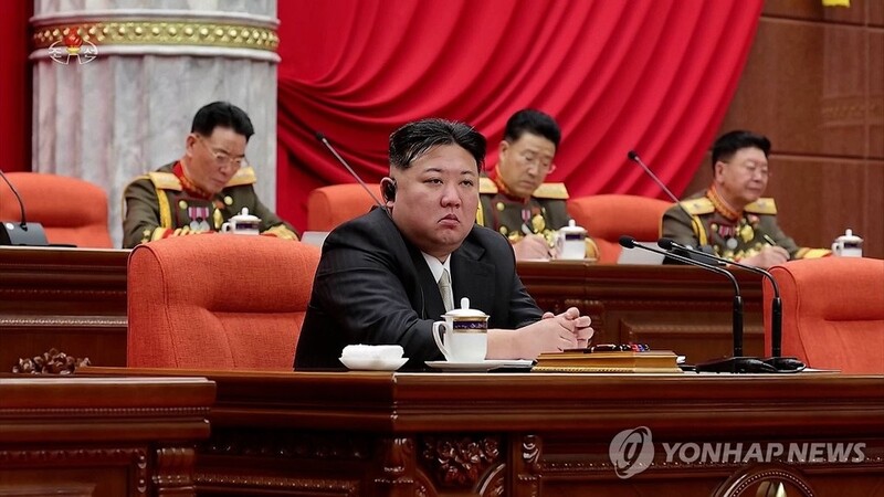 | ▲ This photo, captured from footage of Korean Central Television footage on Dec. 27, 2023, shows North Korean leader Kim Jong-un attending a key ruling party meeting in Pyongyang. (For Use Only in the Republic of Korea. No Redistribution) (Yonhap) |