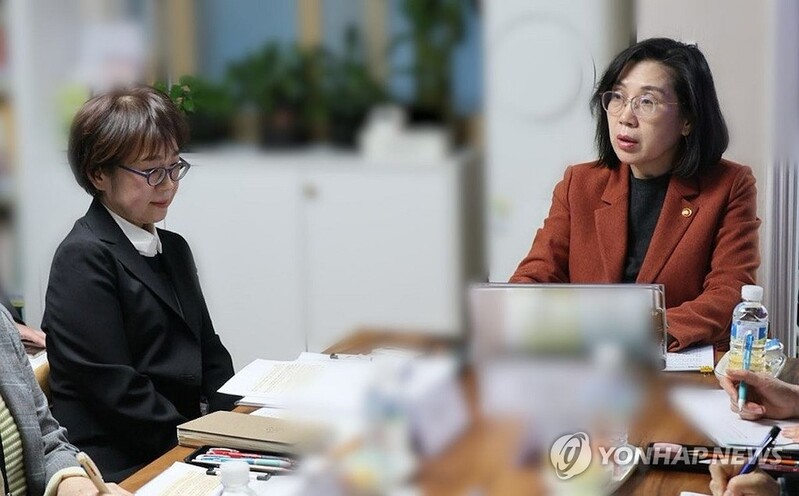 | ▲ Gender Equality and Family Minister Kim Hyun-sook (R) visits an institution in charge of supporting victims of stalking crimes in Seoul, in this file photo provided by the gender ministry on Nov. 29, 2023. (PHOTO NOT FOR SALE) (Yonhap) |