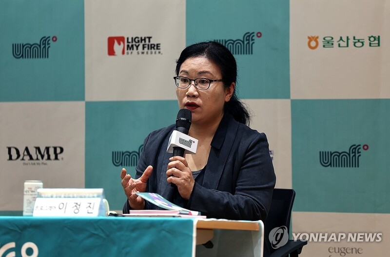 ▲ 발언하는 이정진 프로그래머 (울산=연합뉴스) 장지현 기자 = 25일 오전 울산시청 시민홀에서 열린 제8회 울산울주세계산악영화제 기자회견에서 이정진 프로그래머가 질의응답에 답하고 있다. 2023.9.25 jjang23@yna.co.kr
