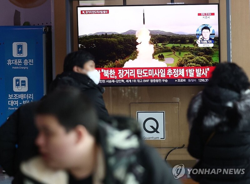 | ▲ A news report on North Korea's launch of a long-range ballistic missile on Dec. 18, 2023, is aired on a television at Seoul Station in central Seoul. (Yonhap) |