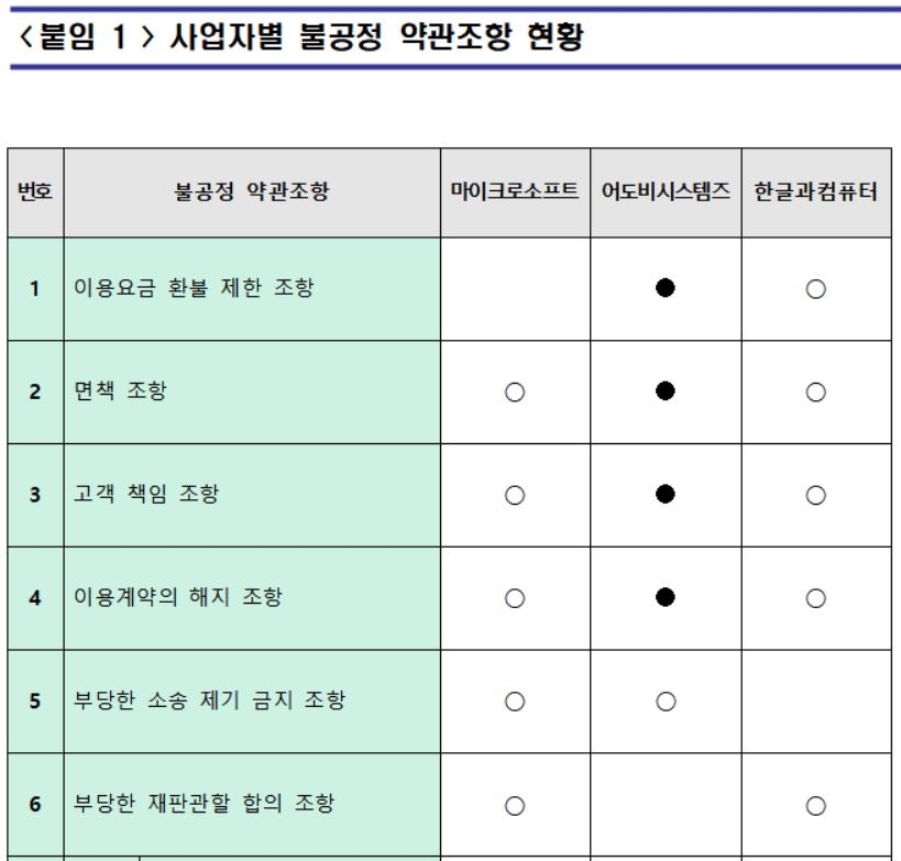 공정위, MS·한컴·어도비 등 약관 직권조사후 조치