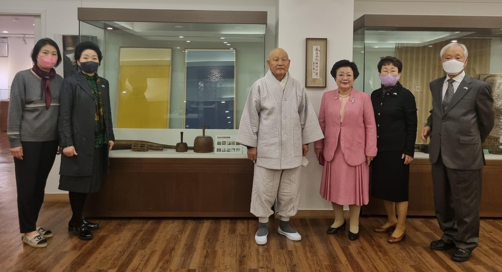 | ▲ 종이나라 박물관을 둘러본 뒤 기념촬영하는 성파스님(왼쪽부터 3번째) [종이문화재단 제공] |