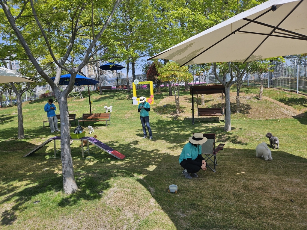(순천=연합뉴스) 장덕종 기자 = 2023순천만국제정원박람회에서 운영하는 반려견 놀이터가 인기를 끌고 있다.